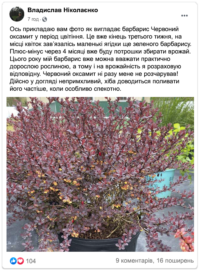 Садівники діляться відгуками на барбарис сорту «Червоний оксамит»