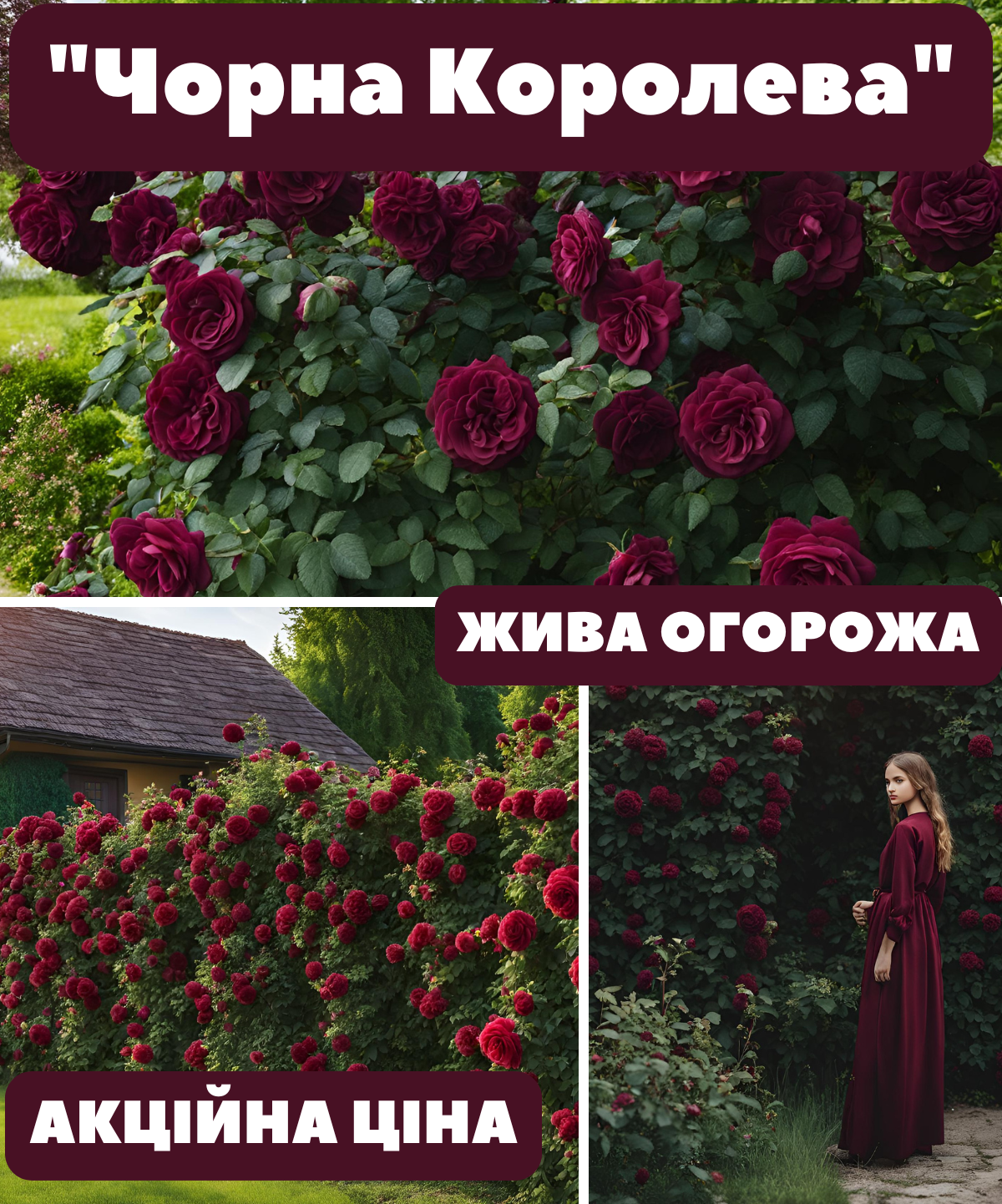 • Насичений колір: Темно-червоні, майже чорні квіти додають саду драматичності та витонченості.