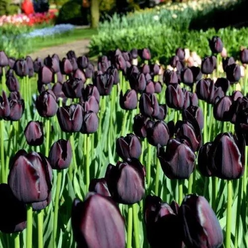Queen of Night — морозостійкий і невибагливий сорт, який ідеально підходить для ранньої посадки. Цибулини чудово переживають холод в ґрунті, розквітають з першими теплими променями сонця. Тюльпани цього сорту можуть цвісти кількома хвилями, тішачи своєю глибиною кольору й шляхетним виглядом. Це вибір для тих, хто прагне додати саду нотку таємничості, розкоші й витонченості.