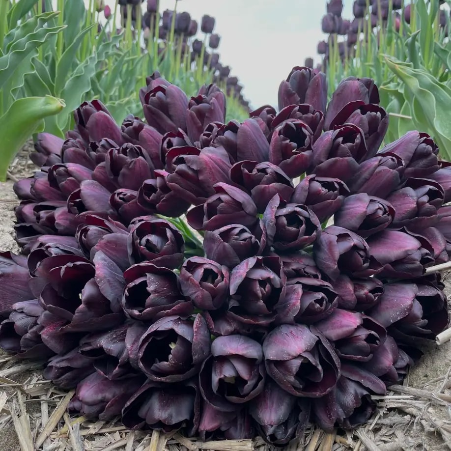 Глибокий, майже чорний відтінок пелюсток із фіолетовим блиском виглядає розкішно як у саду, так і в букетах. Це справжня “чорна перлина” серед тюльпанів.