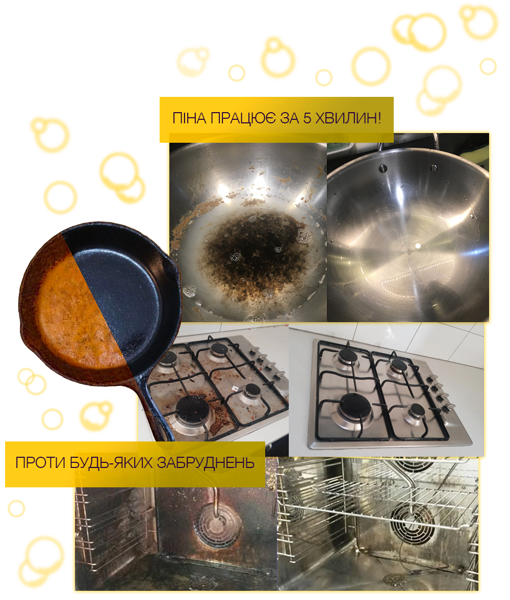 Очищуюча піна Bubble Clean є універсальним засобом, що дозволяє швидко та ефективно очистити поверхні від будь-якого типу забруднень без додаткових зусиль.