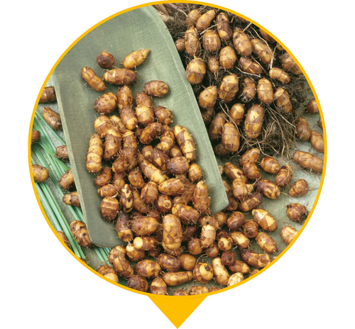 “Лумарс” — це рослина, що під землею формує дрібні їстівні бульби з природною солодкістю та легким горіховим смаком. Ідеальна заміна горіхам не викликає алергії! Вони схожі на маленькі корисні горішки, які можна їсти сирими, підсушеними, додавати в йогурт, каші, смузі або перемелювати на солодке “борошно” для корисних десертів. Це натуральний продукт без хімії, який багатий на клітковину та енергію.
