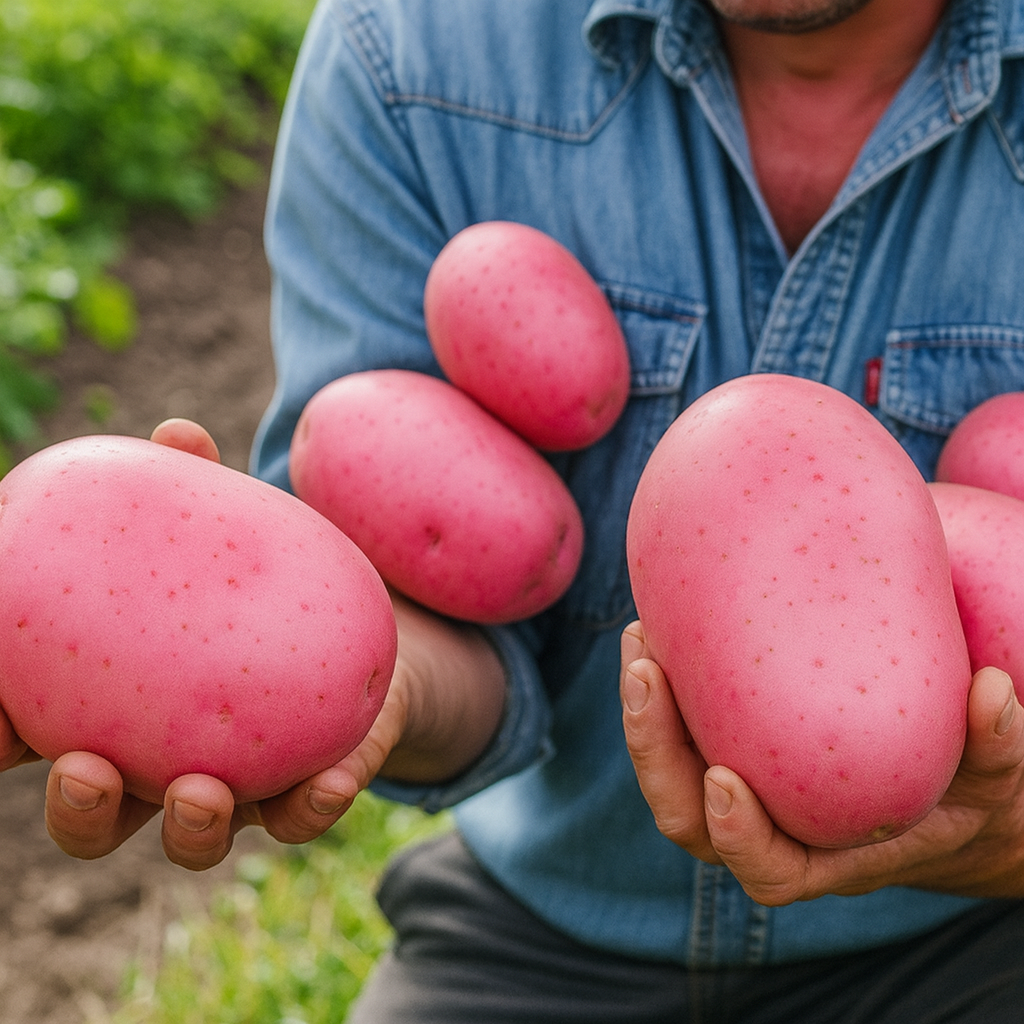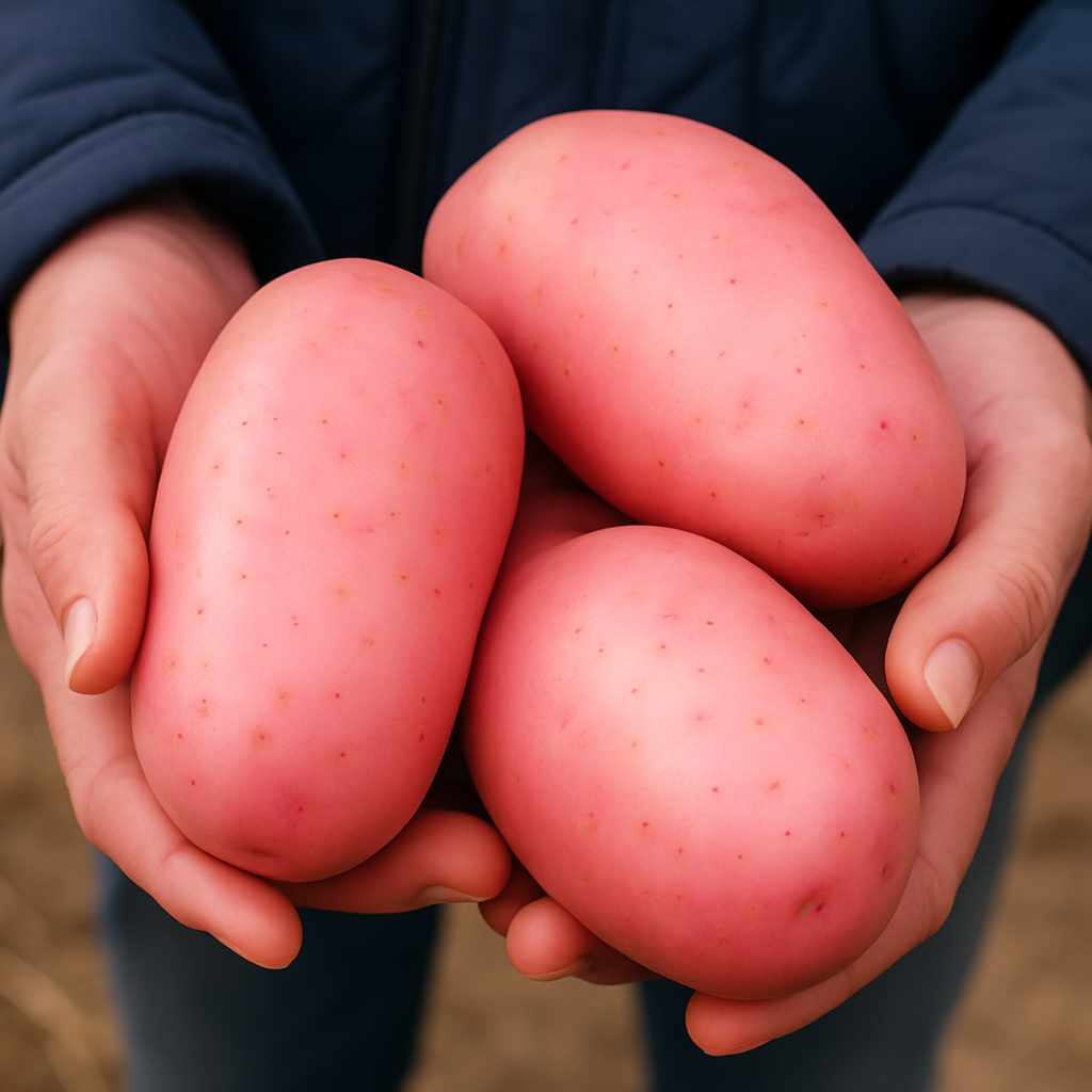 Сорт картоплі «Червоний Дракон» – справжня сенсація з Китаю, яка поєднує екзотичний вигляд із унікальними властивостями. Його рожево-червоні бульби відрізняються великим розміром, щільною жовтою м’якоттю та насиченим смаком. Завдяки короткому вегетаційному періоду (60–70 днів) цей сорт встигає швидко формувати врожай, тому ви отримуєте свіжу картоплю тоді, коли інші лише починають садити.