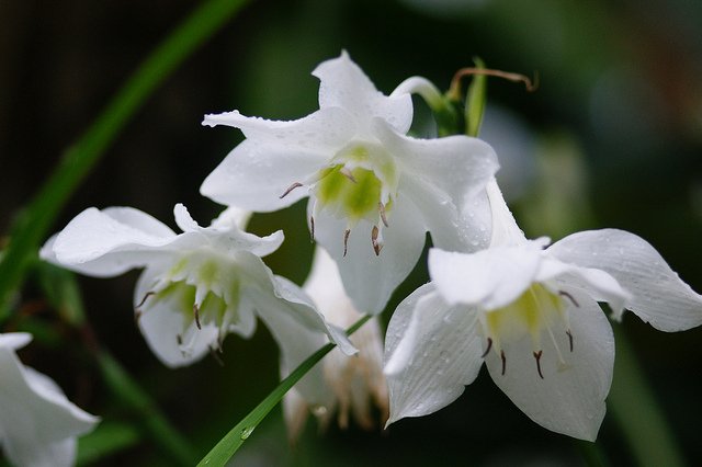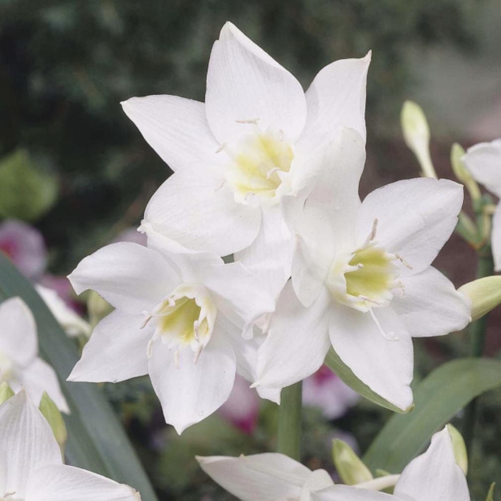 Цвітіння: Квітконоси утворюють суцвіття-парасольки, на яких розташовані 4-8 трохи пониклих квітів білого кольору. Квіти мають діаметр 6-9 см і дуже нагадують нарциси. Вони випромінюють приємний тонкий аромат, роблячи їх ідеальними для зрізу в букети.