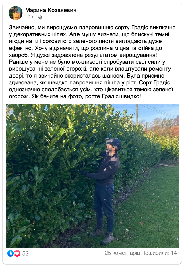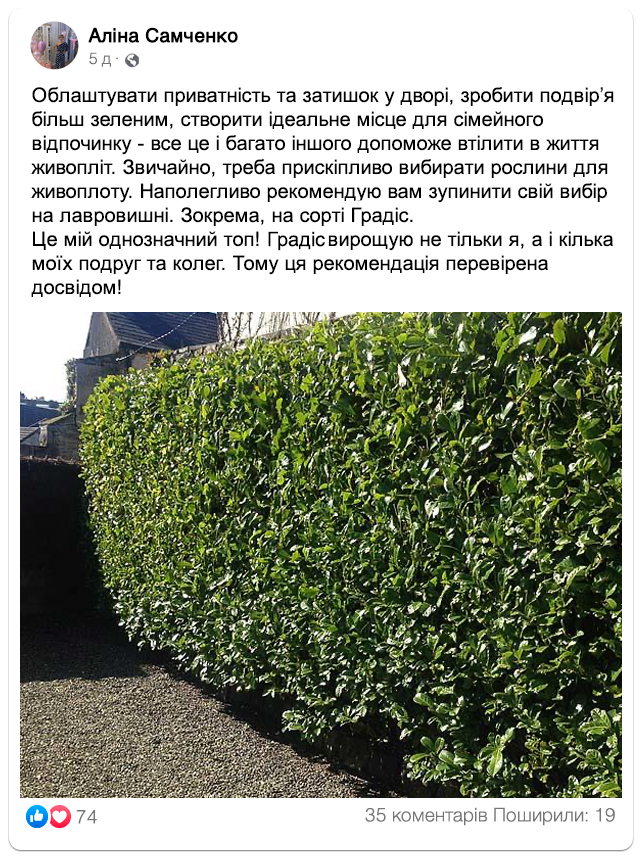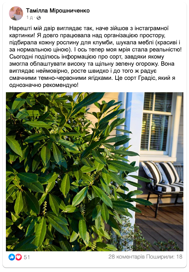 Настав час відмовитися від старого паркану: зелені огорожі наших клієнтів, які вже обрали лавровишню “Градіс”