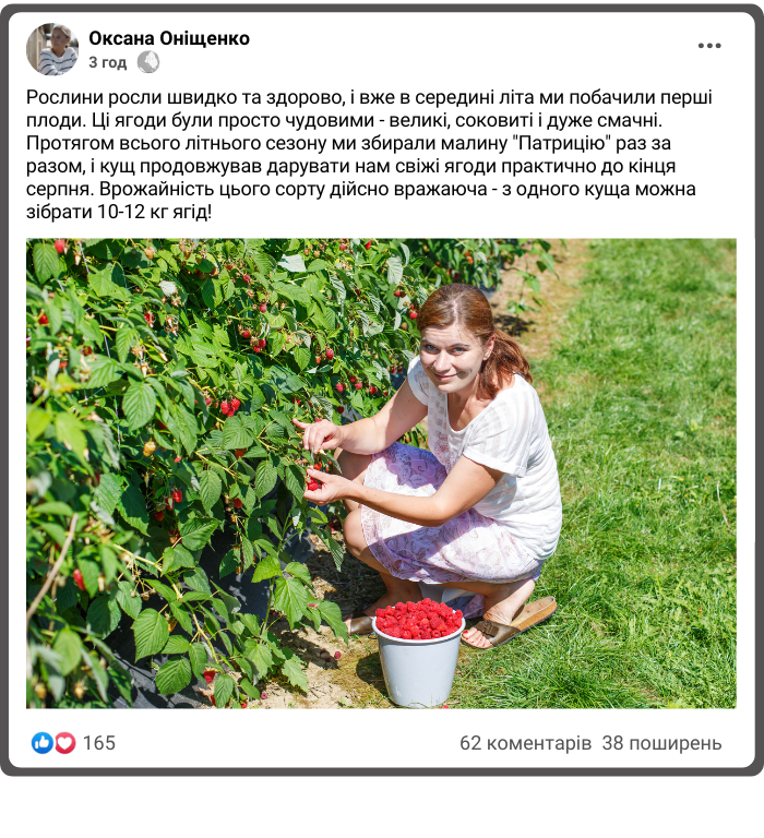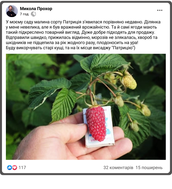 Досвідчені садівники саджають  малину тільки сорту "Патриція"