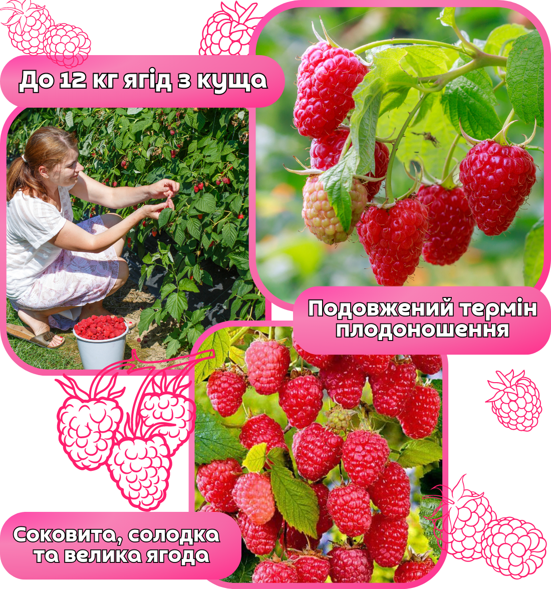 Врожай крупної малини з червня по серпень!