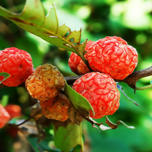 | Ягоди | Плоди великі, солодкі з легким присмаком хурми. Забарвлені у яскраво-червоний або темно-червоний колір. Вони досягають до 2,5-5 см у діаметрі та на вигляд нагадують дуже велику малину або шовковицю. |