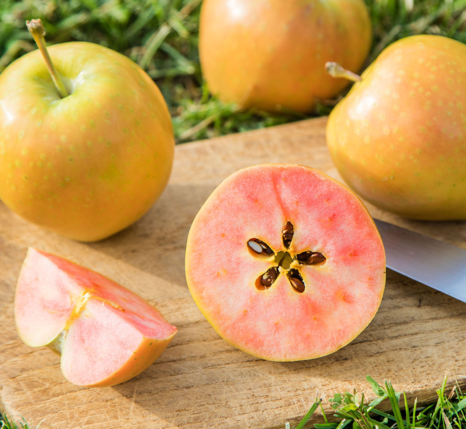 Завдяки унікальній рожевій м'якоті та аромату, яблука Pink Pearl стануть справжньою окрасою вашого саду