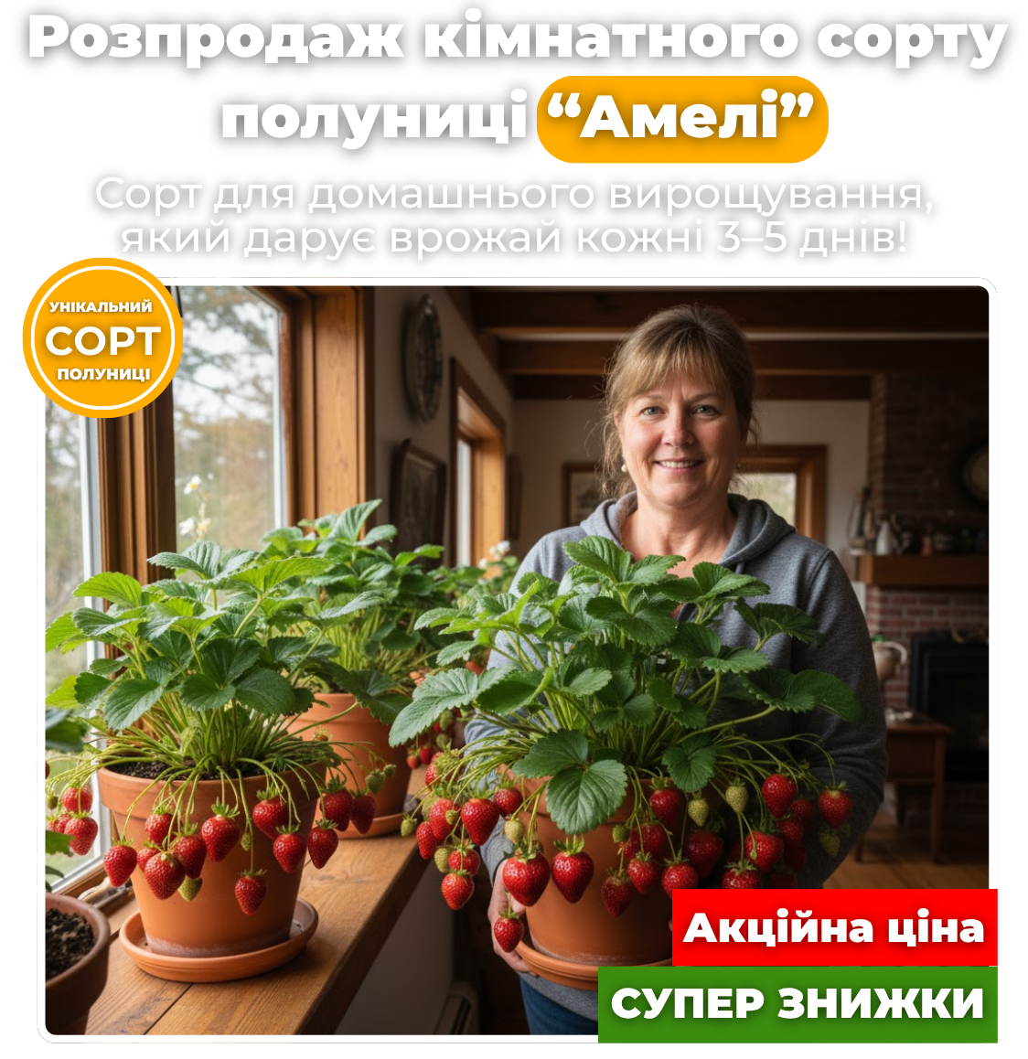 Дружина купила два кущики Амелі, і я чесно не вірив, що в квартирі може бути полуниця. А тепер сам рву ягоди з підвіконня. Солодкі, щільні, ростуть постійно. Дуже здивований і задоволений результатом.