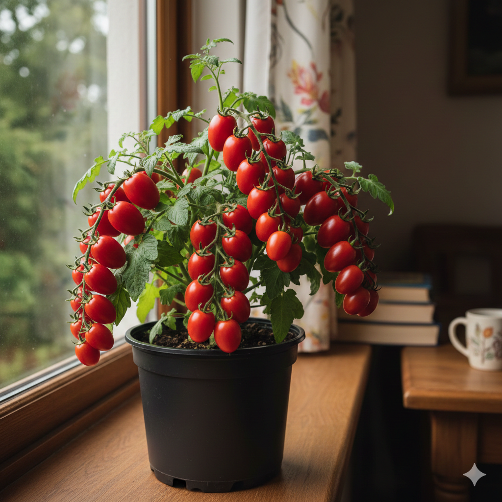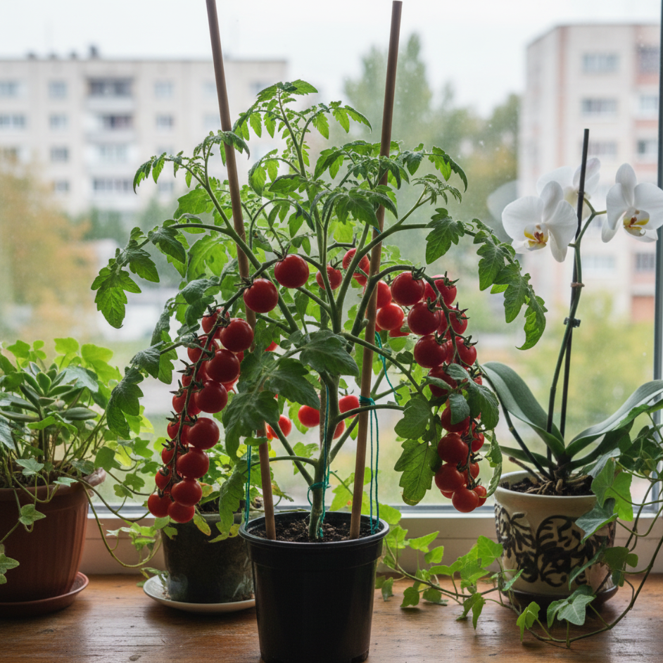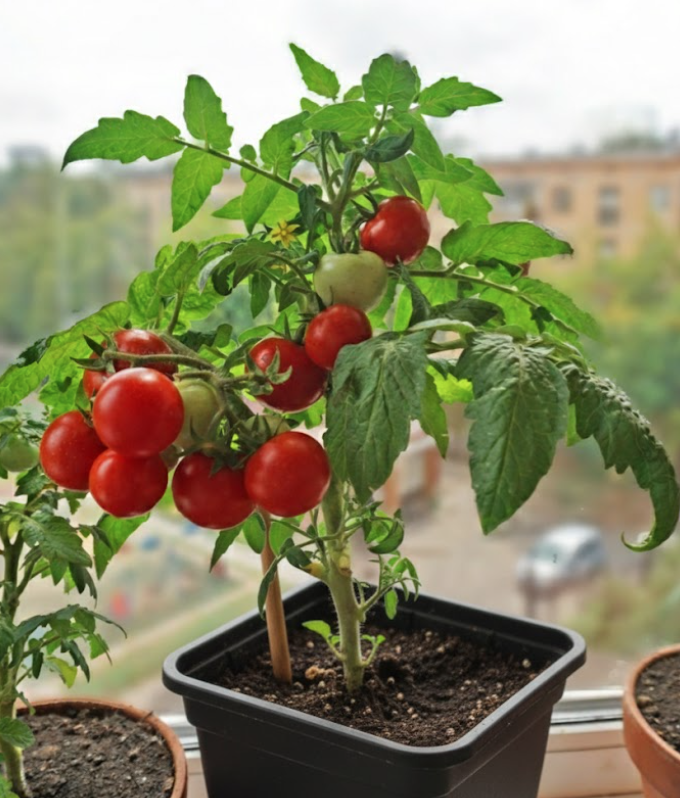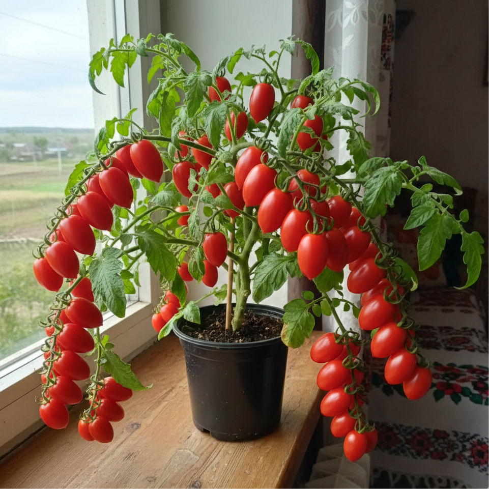 Оптимальний об’єм горщика та дренажна система забезпечують правильне зволоження та живлення без ризику переливу чи гнилі. Такі умови дозволяють F1 сортам формувати компактний, міцний кущ і давати ранні хвилі плодоношення — перші черрі можна побачити вже з 25-го дня.