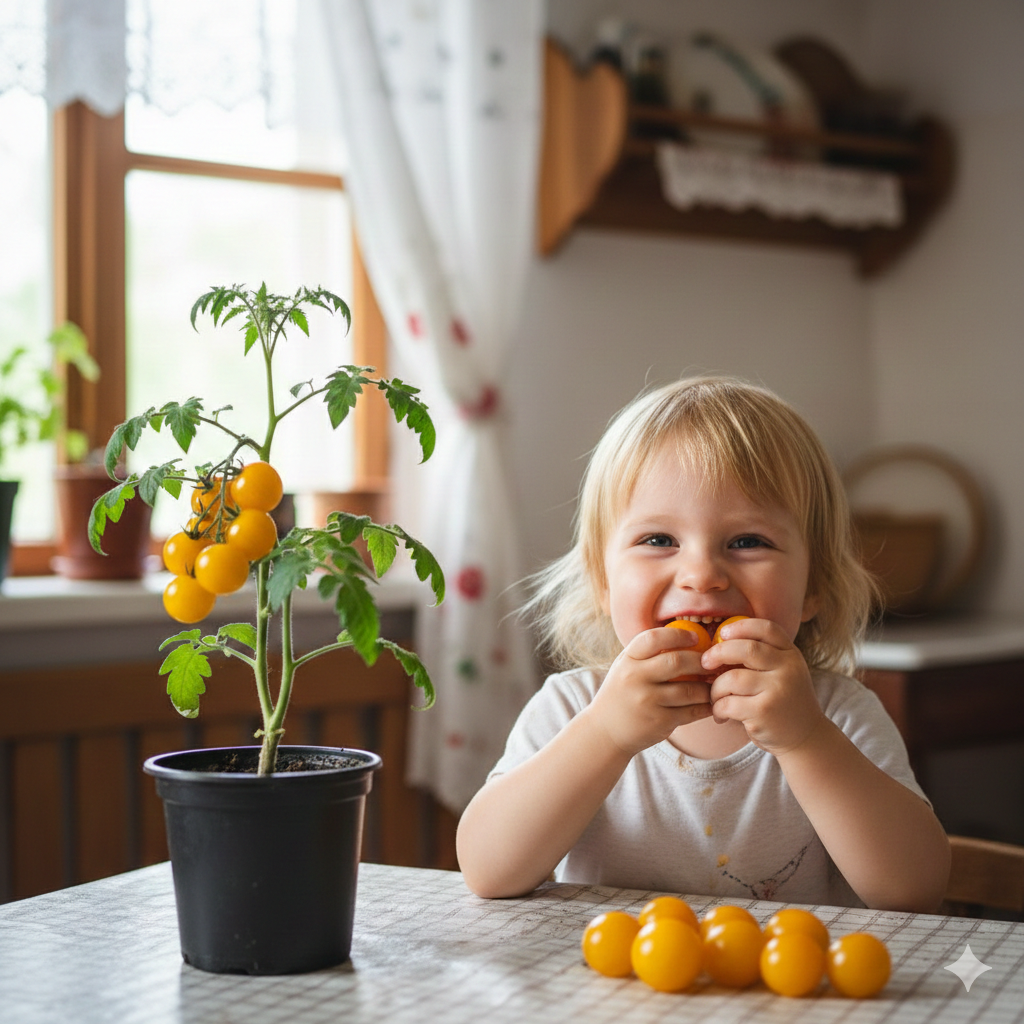 Замовила жовтий Голді, бо діти люблять солоденьке — і не помилилась! Помідорки реально як цукерочки, солодкі й дуже ароматні. Кущ компактний, стоїть на кухні та не займає багато місця. Перші жовтенькі зірвали вже через три тижні. Дуже задоволена!