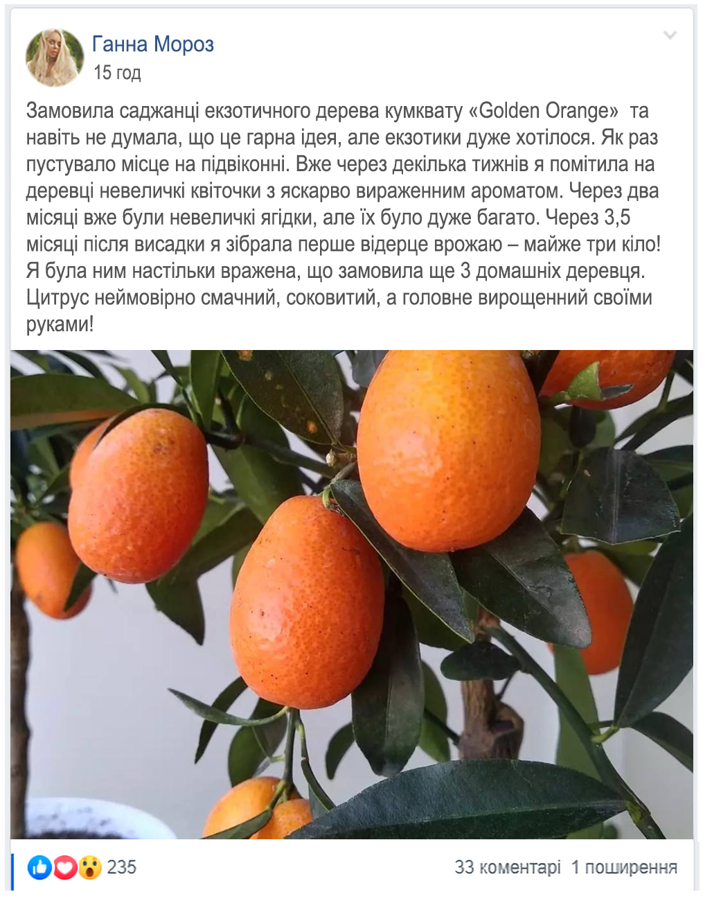 Кумкват «Golden Orange» - улюблений сорт українців!