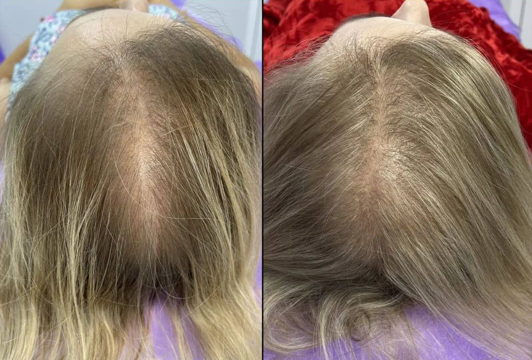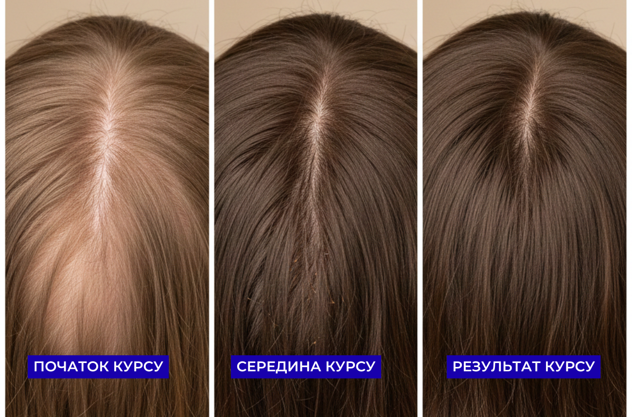 28+ днів: волосся виглядає густішим, проділ не такий “голий”, об’єм тримається краще.